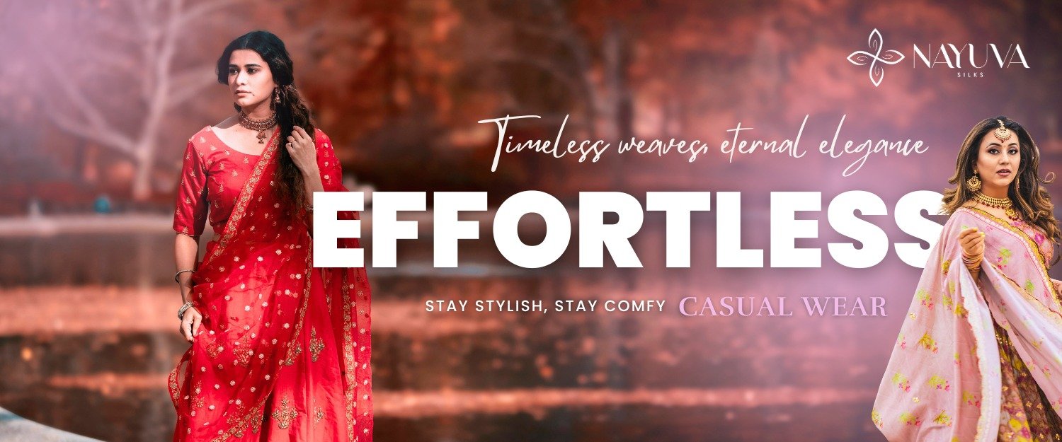 At Nayuva Silks, we blend tradition with modernity to bring you an exquisite range of sarees. With a legacy of craftsmanship, we take pride in offering unique designs, premium quality fabrics, and unmatched customer service. From traditional weaves to contemporary styles, our collection celebrates diversity and elegance. Our values center around authenticity, attention to detail, and delivering happiness through every drape.